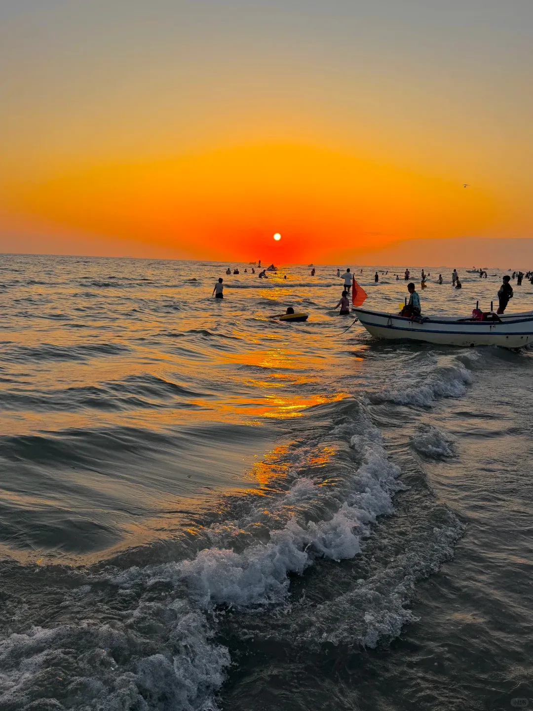 银滩不要门票,但旺季人多,傍晚去最舒服,沙子凉了踩着舒服。