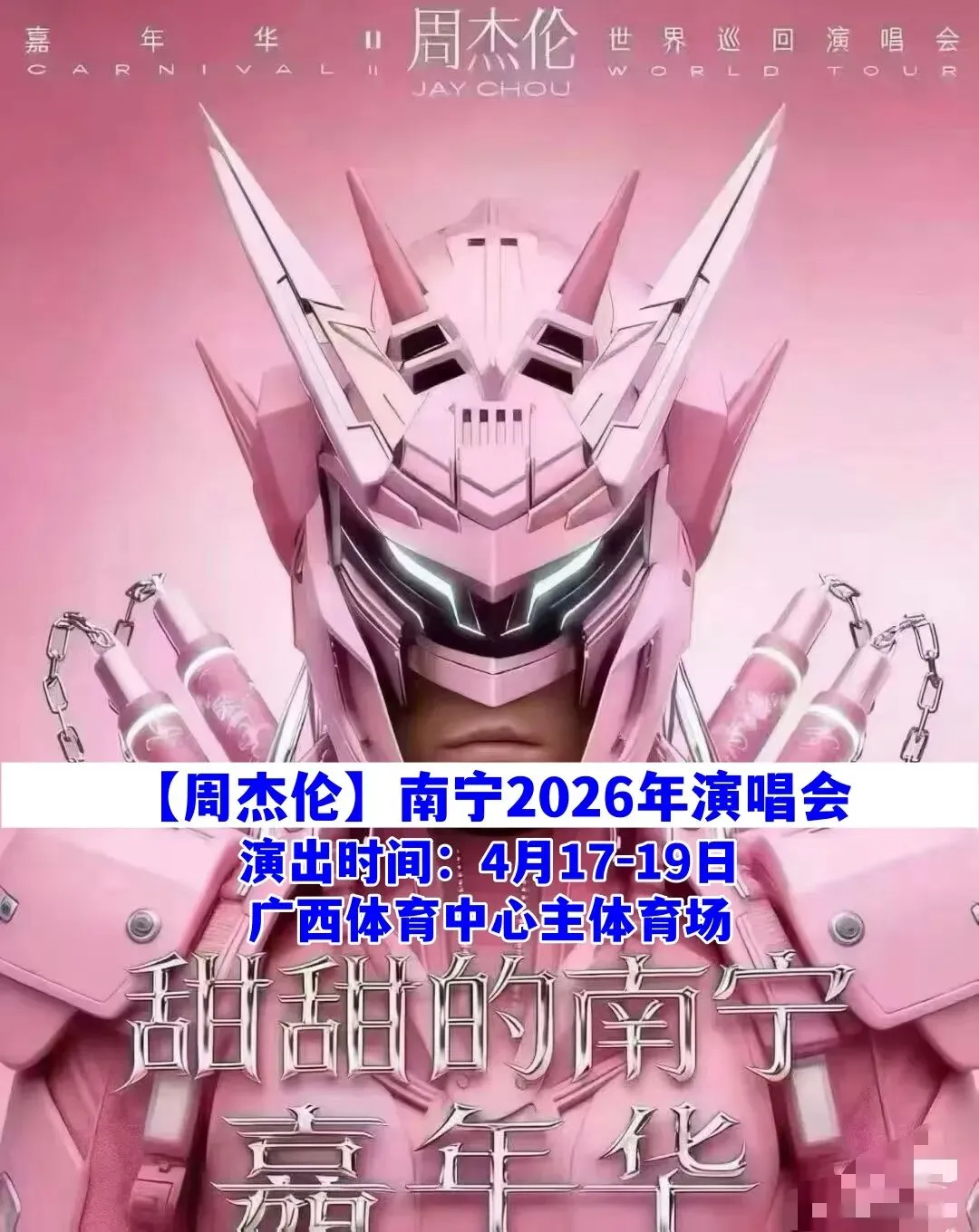 周杰伦「嘉年华II」世界巡回演唱会持续中, 2026年巡演首创「一城一名」定制模式,每座城市均以周董歌名或专辑定调。南宁站定名为「甜甜的」,携一场甜蜜盛典,南宁见哟