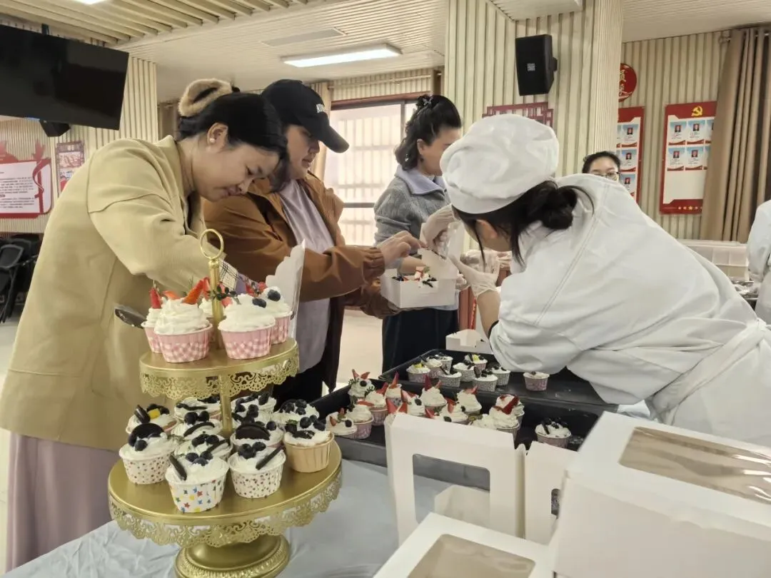 “肩颈放松按摩体验”区域同样人气高涨,贴心的按摩服务让辛勤工作的女教职工们在忙碌的教学工作间隙得到了身心的深度放松。而充满创意与乐趣的“小蛋糕DIY制作”则成为活动的亮点之一。女教职工们纷纷化身糕点师,在动手创作中享受乐趣、释放压力,收获了一份专属自己的甜蜜节日礼物。活动现场还设置了“暖心养生茶品鉴”区,一杯杯暖胃暖心的茶饮,为大家营造了温馨舒适的氛围。