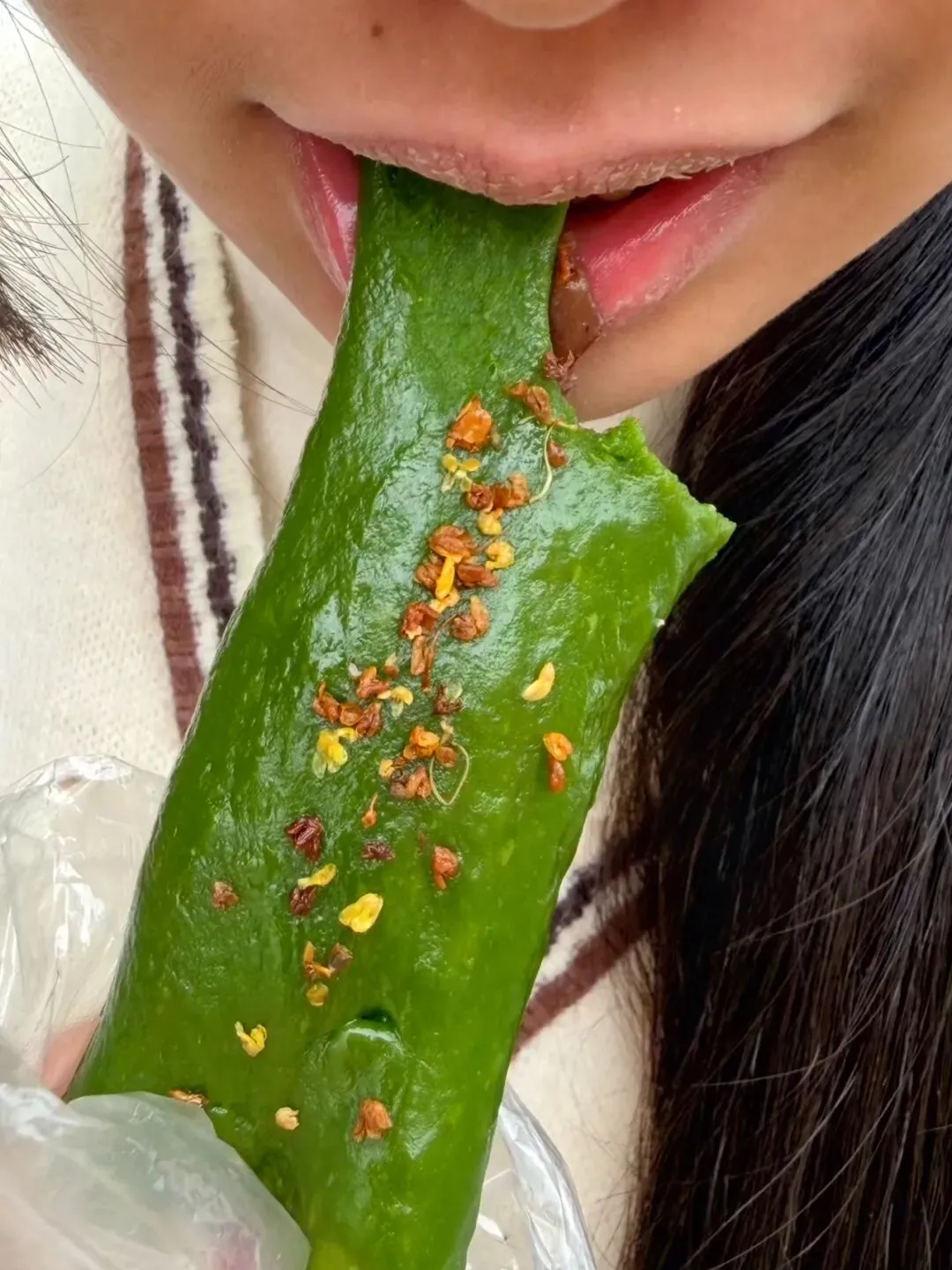 有人解答:“这个口感是加了木薯粉或者马蹄粉的,所以特别Q弹爽口。冰冰着吃,一口入魂!菜市场或者一些传统糕点摊才有”