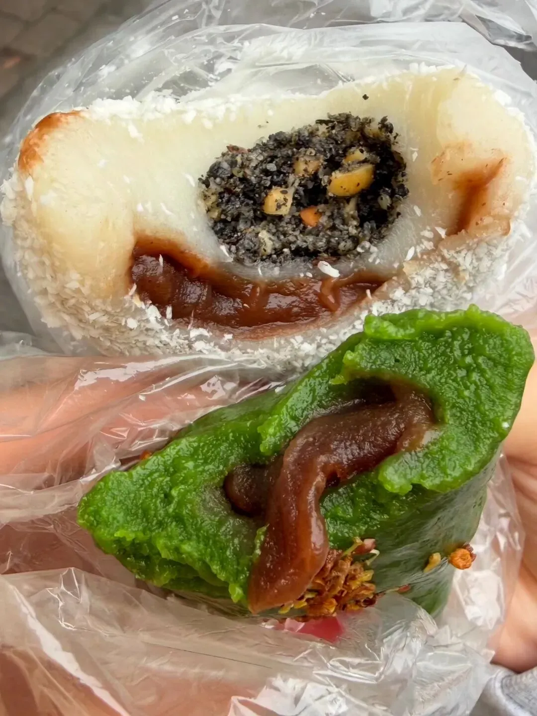 上回去南宁玩,在老城区的巷子里瞎逛。看到一个小店卖糯叽叽的东西,颜色从嫩绿、乳白到墨绿。