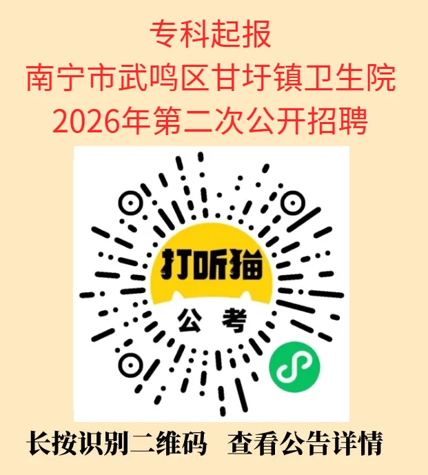 >【南宁招聘】专科起报!南宁市武鸣区甘圩镇卫生院2026年第二次公开招聘!