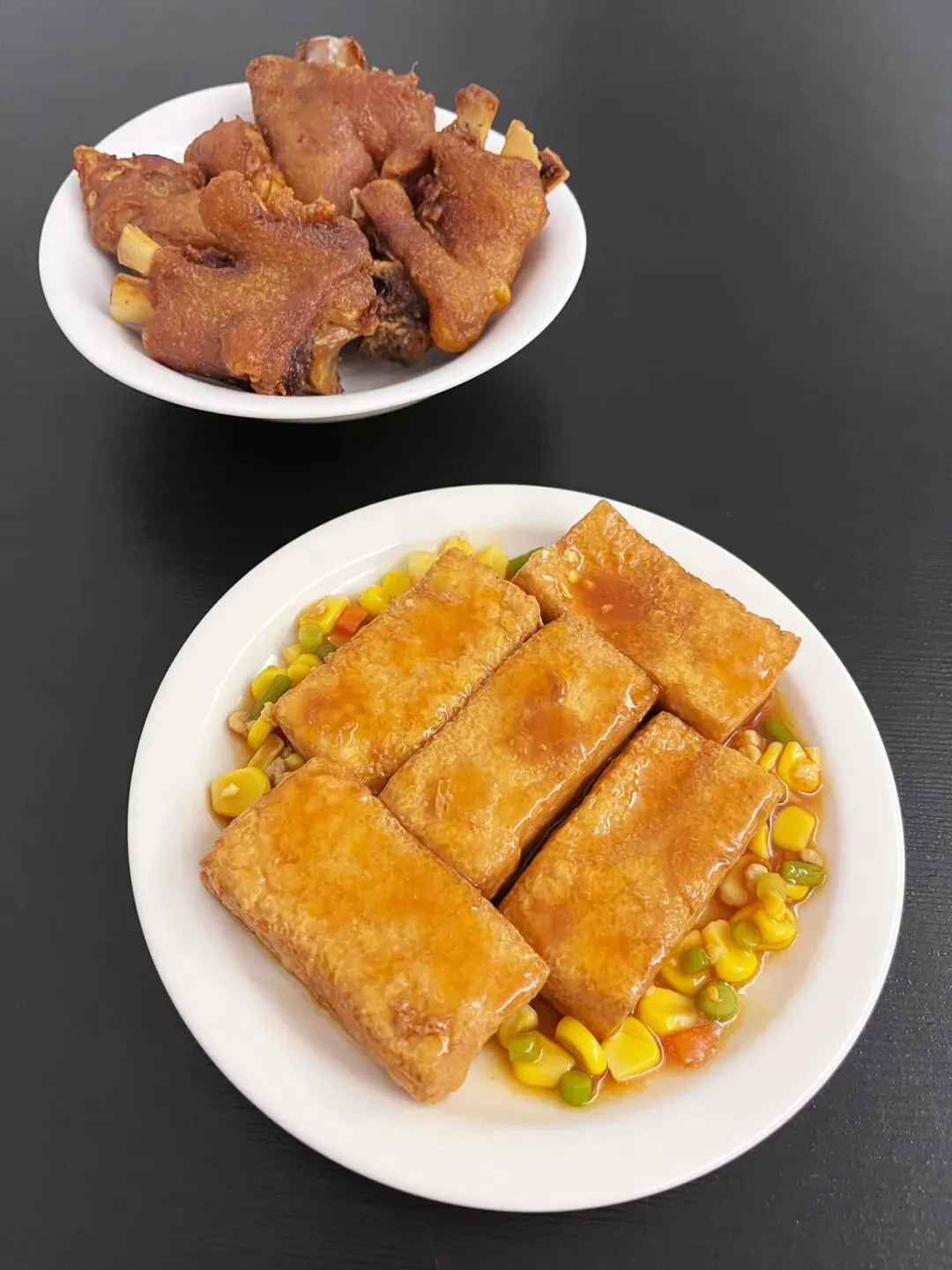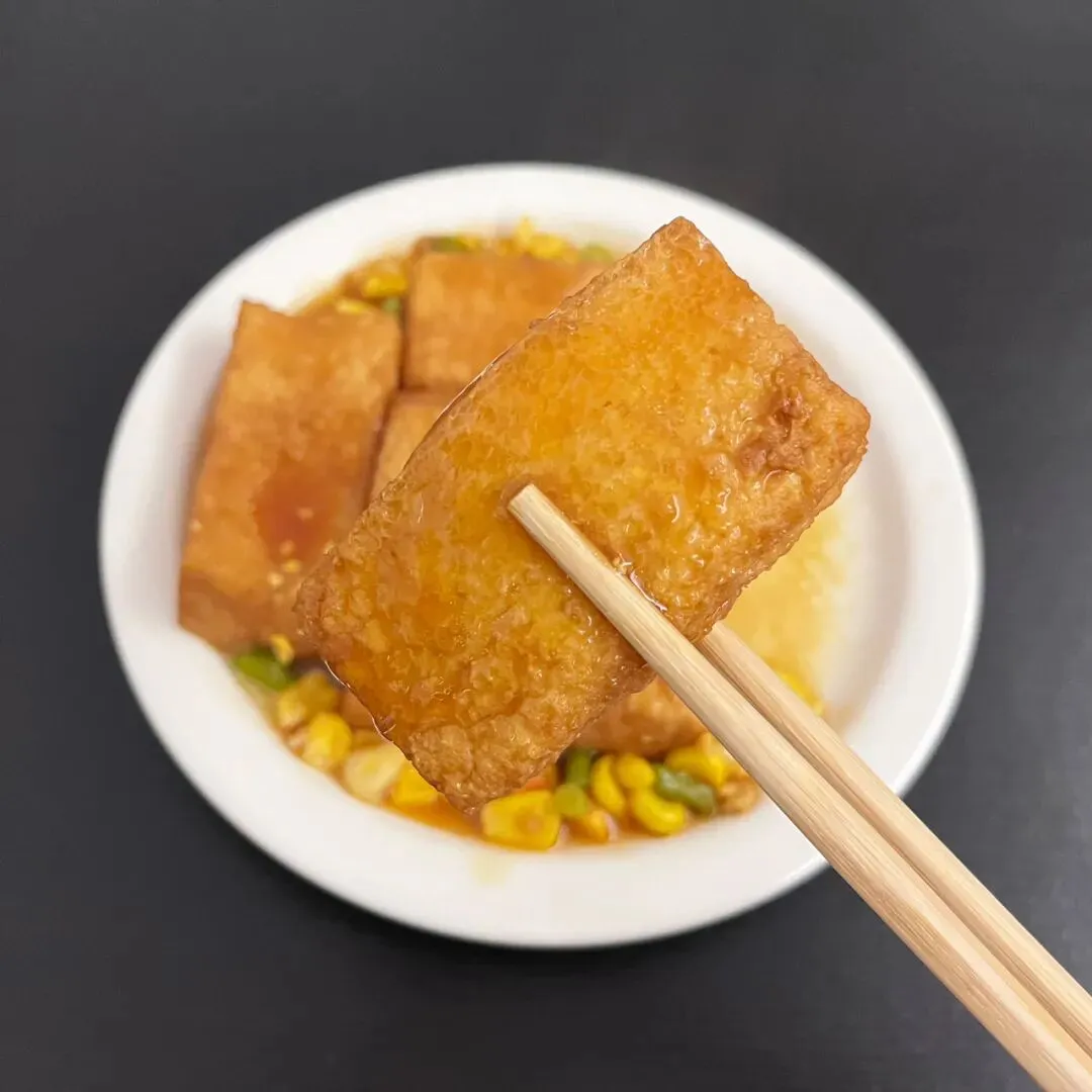 以前以为这豆腐,估计和外边的铁板豆腐差不多,而且还那么厚,就以为它的味道应该一般。