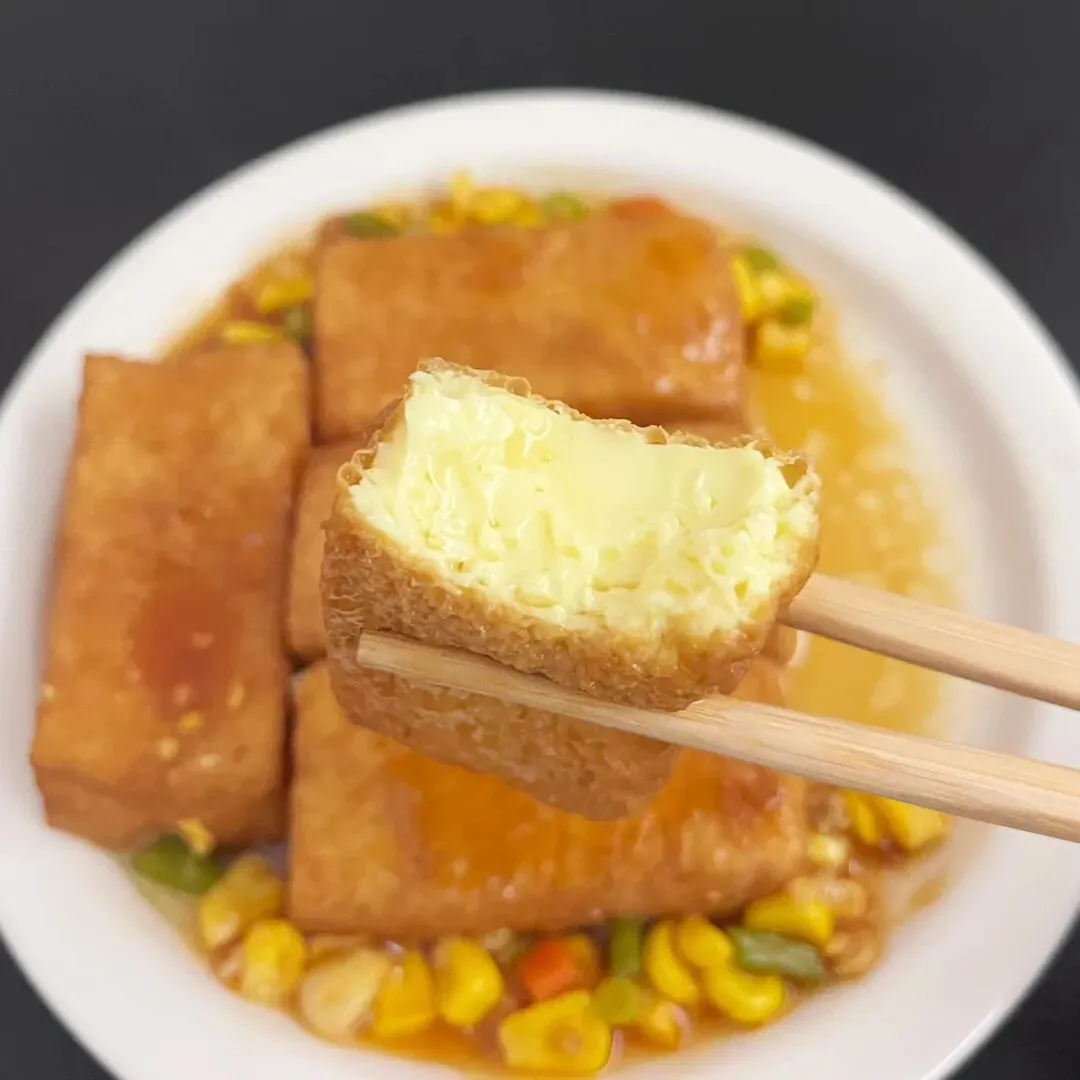 这次是第一次点,咬进去才发现不是平常的普通豆腐,是有点像日本豆腐,有着蛋味,滑嫩滑嫩的,吃起来有点儿像水蒸蛋。