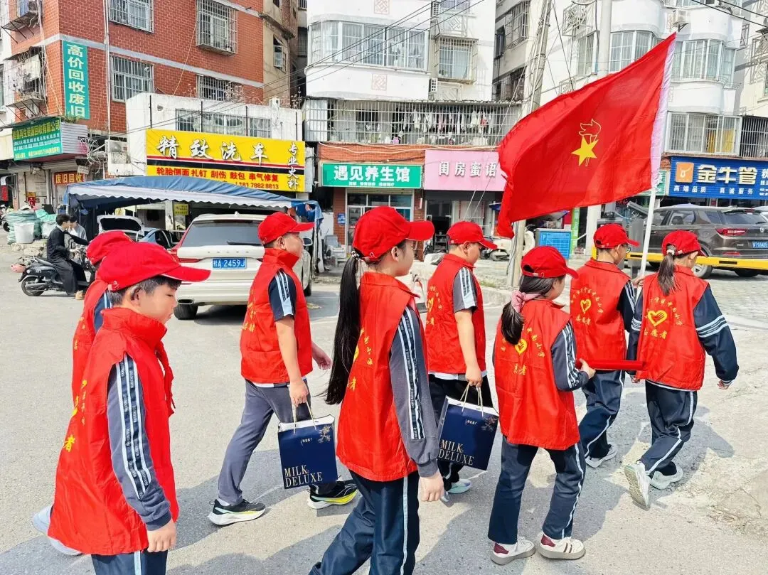 下午时分,南宁市兴宁区中南小学的少先队员代表们带着精心准备的礼物,在学校集合后一同出发。他们的目的地是位于长堽路的齿轮厂生活区。这段路程对年纪尚小的少先队员们来说并不算短,但一路上,没有一个人喊累,也没有一个人掉队。大家排着整齐的队伍,怀揣着期待与热情,脚步轻快地奔赴那份“温暖的约定”。