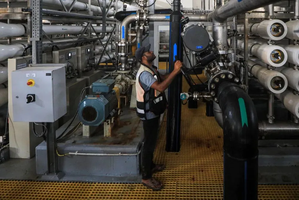 2024年7月24日,在加沙地带中部城市代尔拜拉赫,一名工人在海水淡化厂工作。新华社发(里泽克·阿卜杜勒贾瓦德摄)