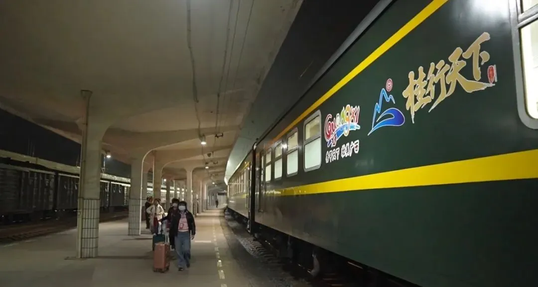 3月6日22时55分,K5911次“桂行天下”赏花旅游专列从南宁站缓缓驶出,这是国铁南宁局今年春季开行的首趟赏花专列,234名旅客搭乘专列奔赴云南、贵州,开启为期4天3晚的春日花海之旅。(详情>>)