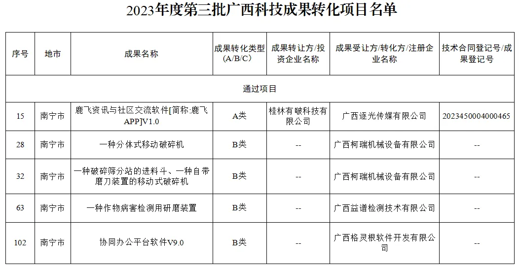 入选!南宁·中关村5个创新项目入选2023年度第三批广西科技成果转化项目