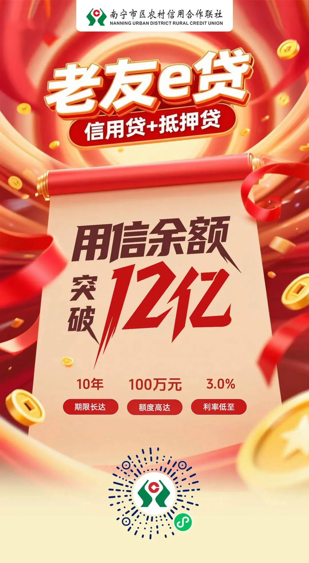 >南宁市区联社老友e贷用信余额超12亿元!