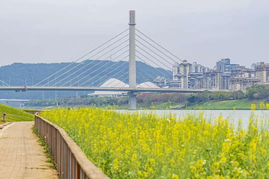 一面江景,一面花海。这里,是城市里触手可及的“诗与远方”。江水开阔,波光潋滟。偶尔有船只缓缓驶过,在水面划开一道道温柔的水痕。