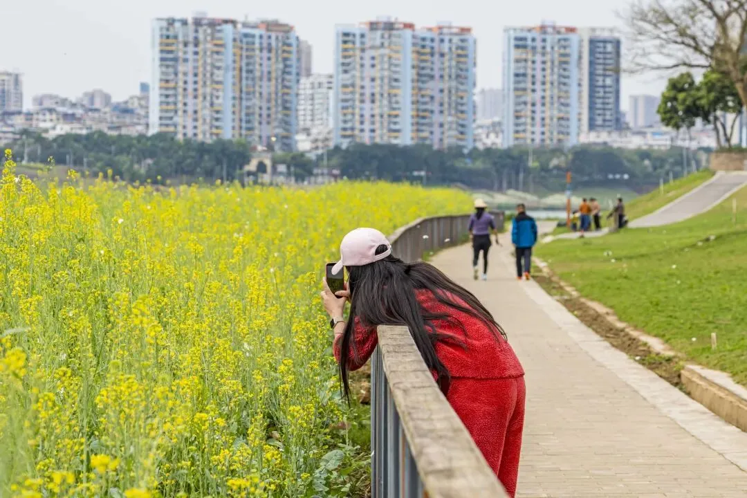 谁说浪漫一定要去远方?在广西南宁青秀区,春天把一份“藏起来的惊喜”,悄悄留给了柳沙公园。若你不想前往距离稍远的青秀区长塘镇千亩油菜花田,可以到市区里的柳沙公园,这里的一片金色油菜花海正热烈绽放,等你来赴这场春日之约。