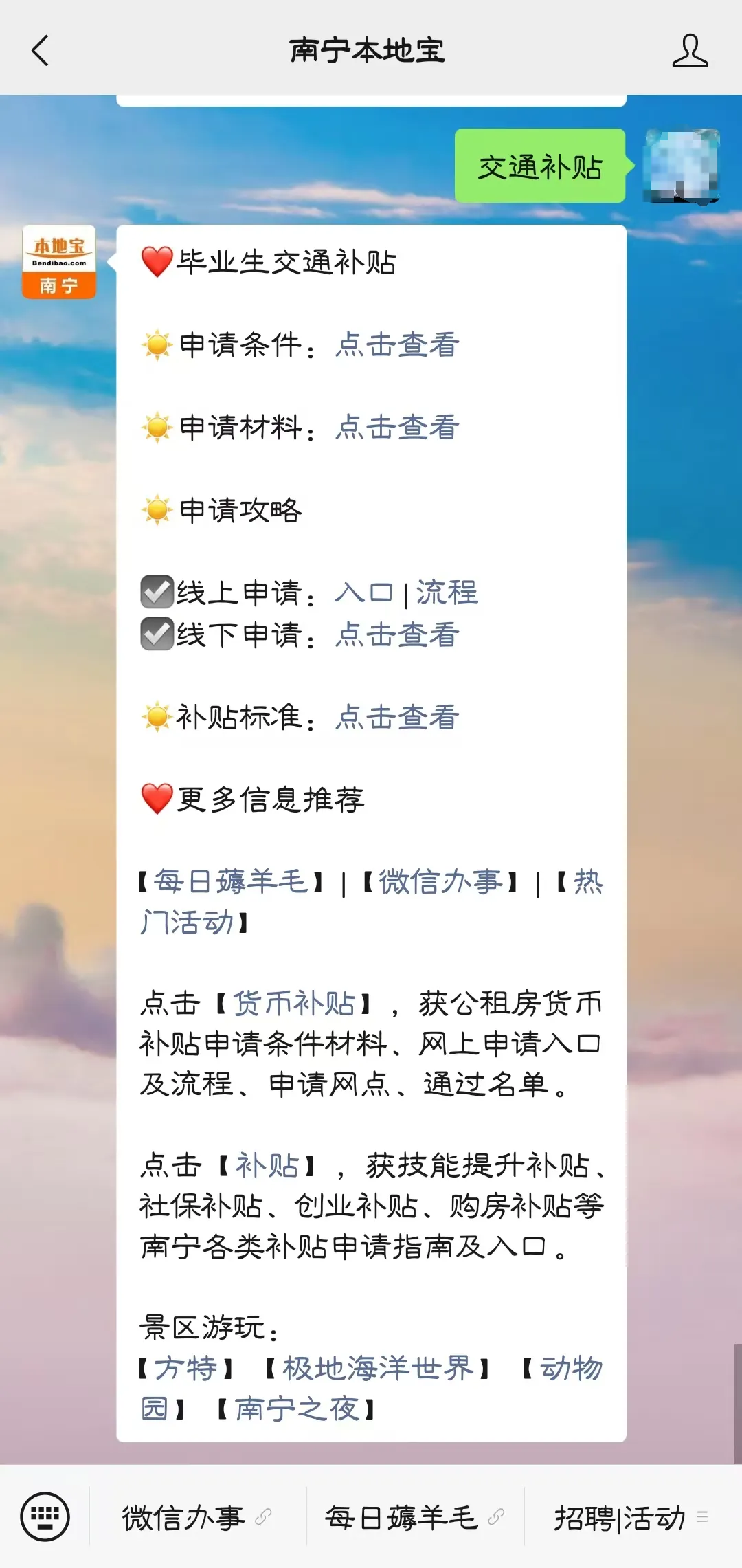 小编提示:在南宁本地宝对话框回复【交通补贴】,即可获取《南宁市产业发展急需紧缺人才企业名录》。