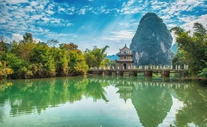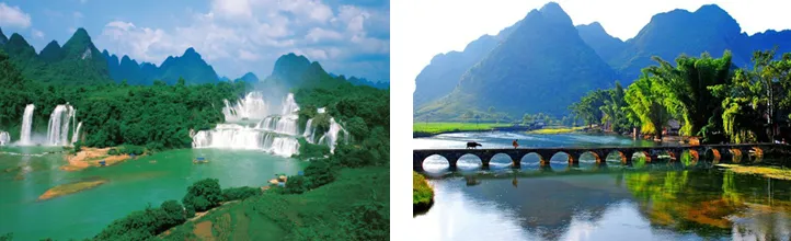 酒店享用早餐。后自费前往游览《花千骨》长留山仙境、中国最美瀑布、国家5A名胜风景区【德天跨国大瀑布】(自费套票,游览约2.5小时,不含景区换乘车费35/人客人自理)。德天大瀑布位于中越边境、中国广西大新县,为国家特级景点。德天瀑布景观横跨中国、越南两个国家,是亚洲第一大的跨国瀑布(瀑布宽208米,落差70米,与越南板约瀑布相连)。瀑布气势磅礴,一波三折,层层跌落,水势激荡,声闻数里。德天瀑布雄奇瑰丽,变幻多姿,其魄力,其气势,其风采,震魂摄魄,摇动心旌。它以其自然美的绝对优势被评为“中国最美的六大瀑布之一”!午餐品尝越南柠檬鸡肉粉。抵达后前往素有气候“小昆明”之称,又有山水“小桂林”之誉的旅游度假胜地【靖西】。抵达后自费前往游览《蜀山战纪之剑侠传奇》拍摄地、中国西南三大名泉之【靖西鹅泉】。鹅泉与大理蝴蝶泉、桂平西山乳泉并称西南地区三大名泉,自古既是靖西八景之一。鹅泉既是德天瀑布的源头,也是珠江的源头之一。鹅泉是一处面积达50余亩的巨泉,泉水从石灰岩缝隙中涌出,汇入深潭,然后继续东流,称为鹅泉河。泉边建有杨媪庙,庙前立有清代《鹅泉亭碑》等三块巨大石碑,石碑所载的大都是历史以来有关鹅泉的由来及题诗,庙内四壁题字碑刻众多,映衬以山光水色,显得极为清幽。泉中盛产鲤鱼,据说人们在泉边大声呼喊,引起水面震动,鲤鱼受惊便会竞相跃出水面,便是靖西著名一景“鹅泉鱼跃”。泉上建有15孔拱桥,建于清代,是靖西县保存较为完好的古桥。长桥卧波,气势壮观,为鹅泉胜景之一。