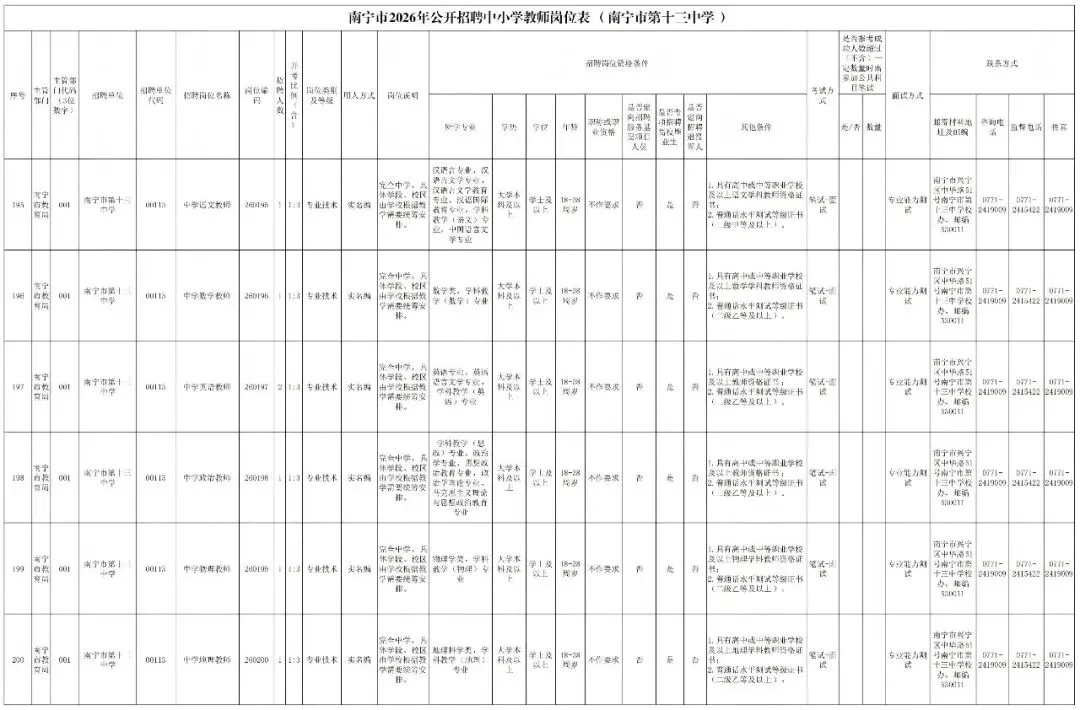 附件:南宁市2026年公开考试招聘中小学教师岗位表
