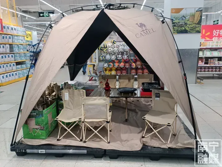 除沃尔玛外,大康惠超市等南宁多家综合超市均加大春季户外用品铺货力度,以组合套餐、限时优惠等方式拉动销售,让露营装备从“小众户外品”变成大众春日消费品。