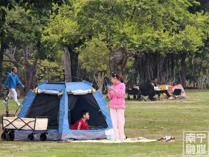 除南湖公园外,邕江沿岸公园、灵龟山公园等露营点位同样人气高涨,城市露营从“网红潮流”变为南宁人春日生活标配,带动装备采购、户外餐饮、休闲娱乐等联动消费,为春日经济注入持续动力。