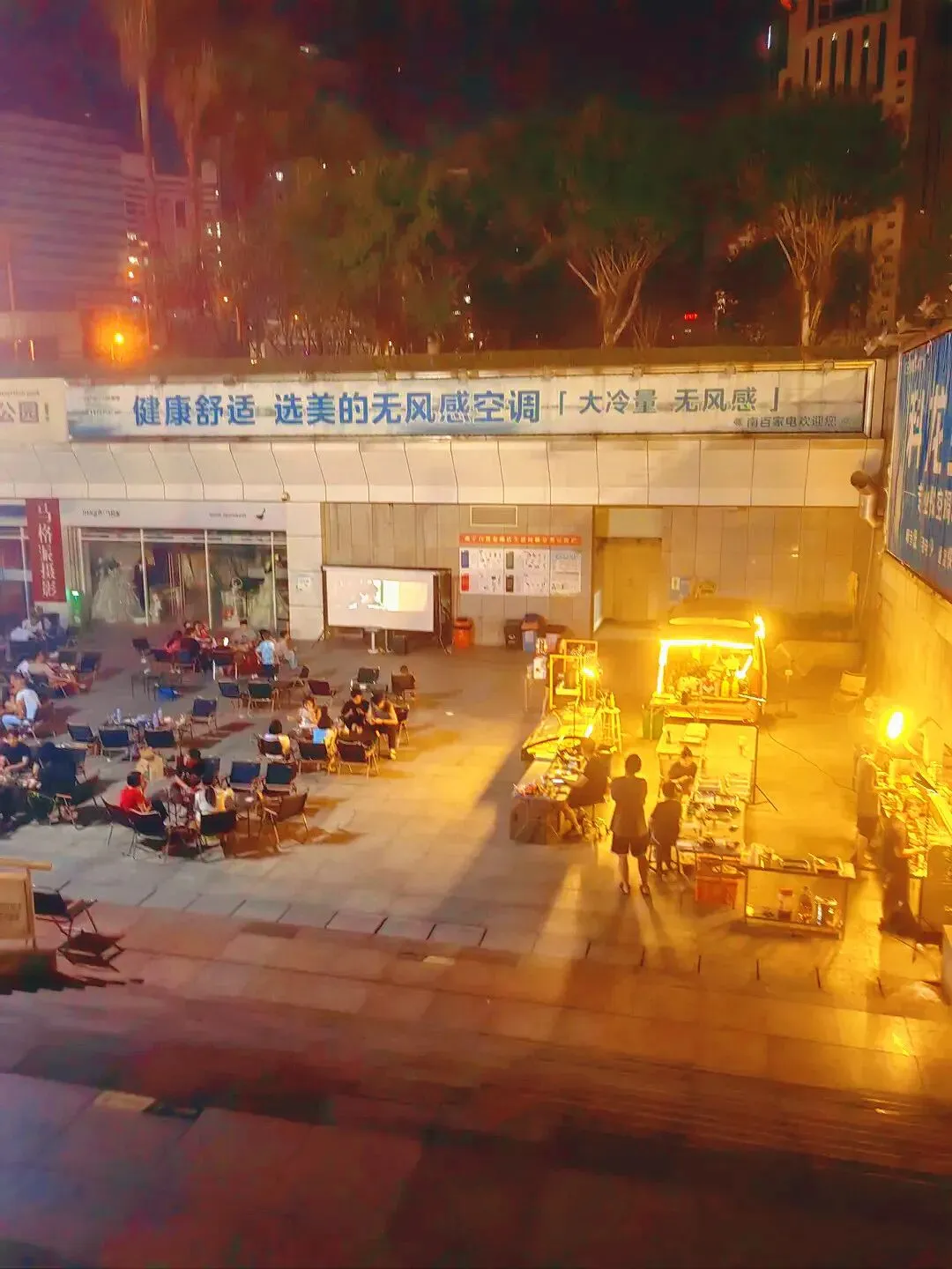 远处的大屏幕上还放着电影,偶尔有孩子在空地上追逐打闹,笑声清脆。这种烟火气,是那些装修精致的餐厅里永远找不到的。