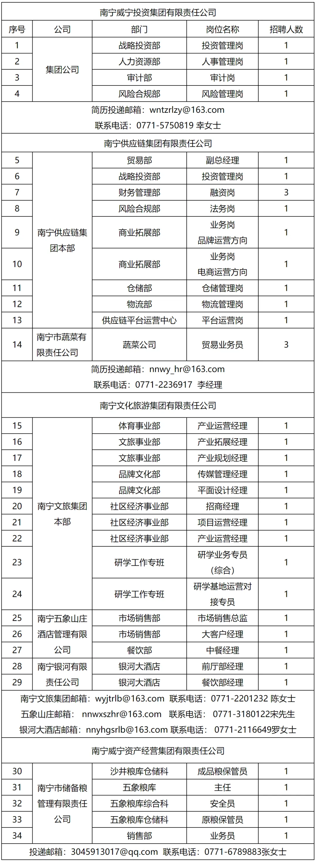 面试确定人员将以短信或电话形式通知,通过简历筛选人员将以短信或电话形式通知,请应聘者保持手机畅通,未通过人员将不再通知。未尽事宜请联系幸女士,联系电话:0771-5750819。(工作日上午8:00-12:00,下午15:00-18:00)如需进一步了解我集团详细信息及最新动态,敬请登陆公司网站https://www.wntzjt.com/。欢迎关注南宁威宁投资集团微信公众号
