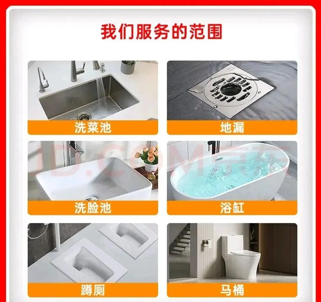 疏通服务:包括家庭、酒店、饭店等所有场景的下水道疏通;马桶内异物(抹布、毛巾等)捞取与疏通;面盆、菜池、蹲坑、地漏的疏通与维修更换。