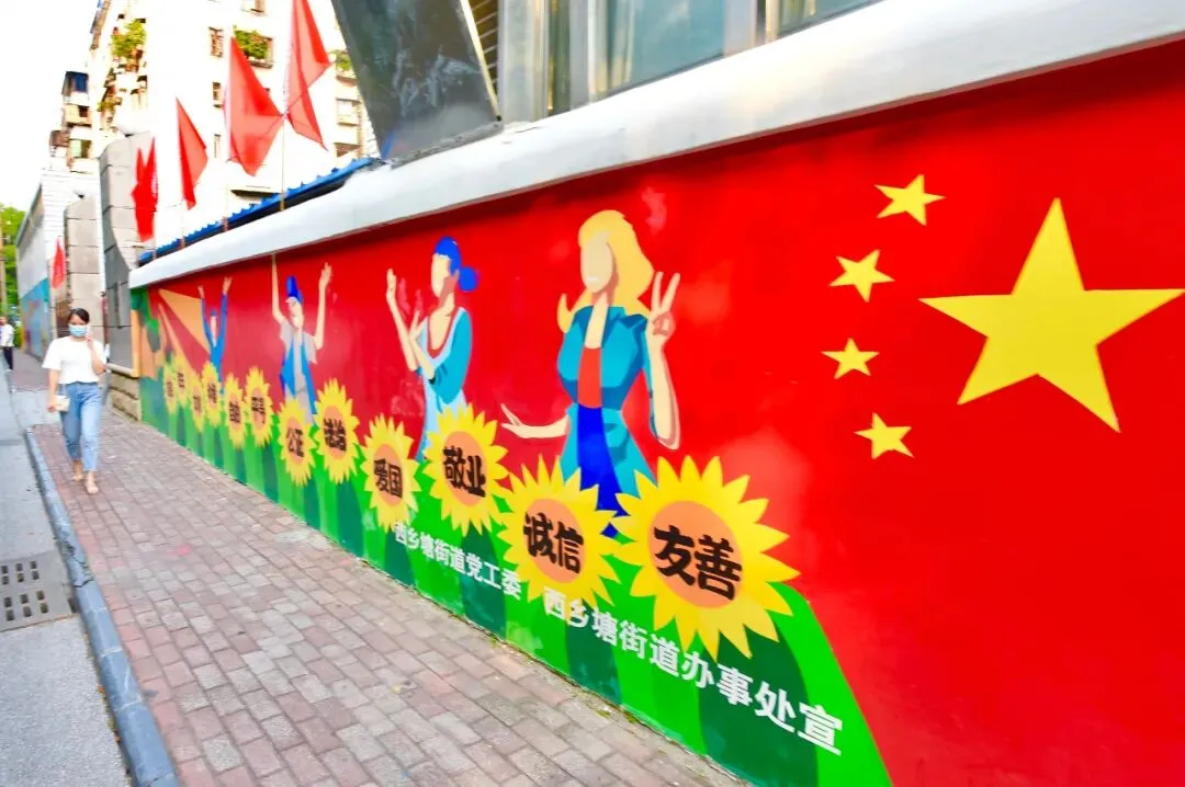 ▲9月3日,在南宁市西乡塘区秀灵路西一里,一面公益文明绘画墙格外醒目。