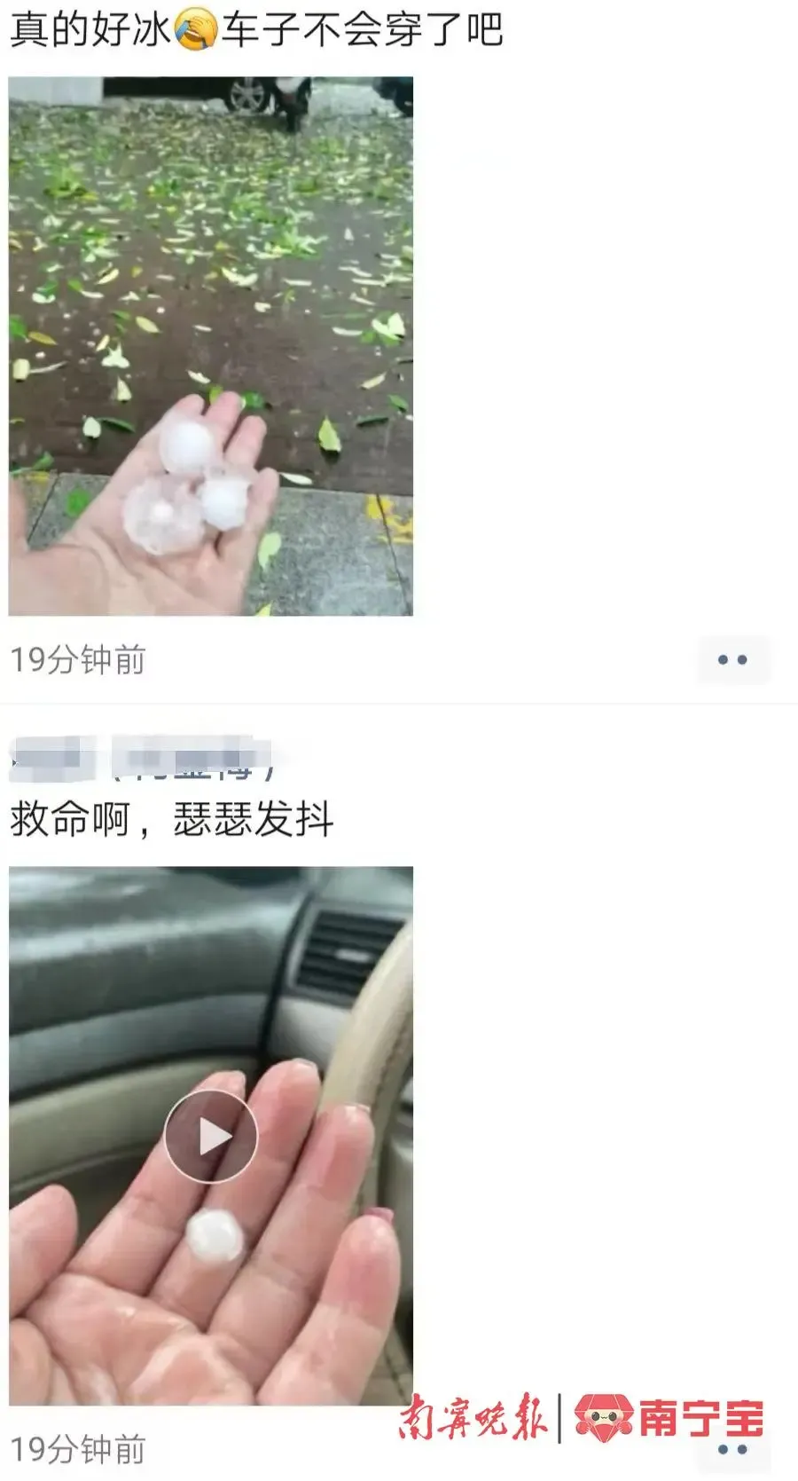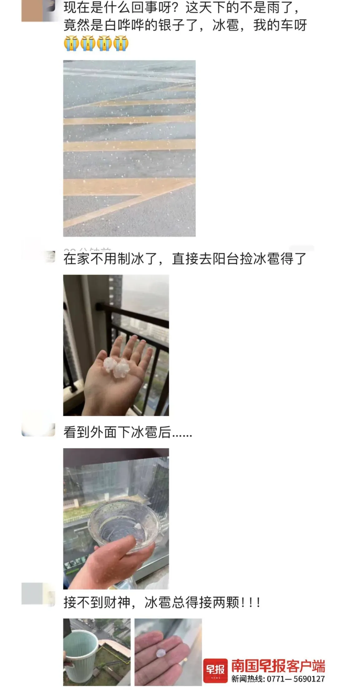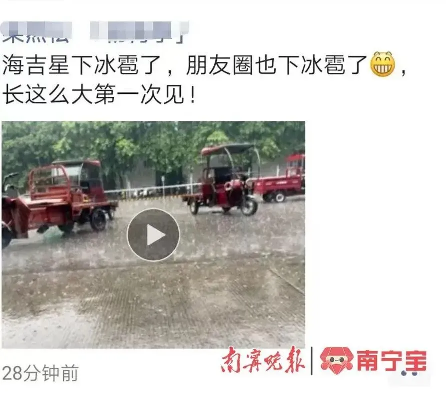 有小伙伴就问了,这才隔两天,南宁又下冰雹,是什么原因?对此,南宁市气象局首席预报员黄莉解释说,有冷空气南下,触发强对流,引发隆安、武鸣、西乡塘区坛洛、江南区等有冰雹报告。