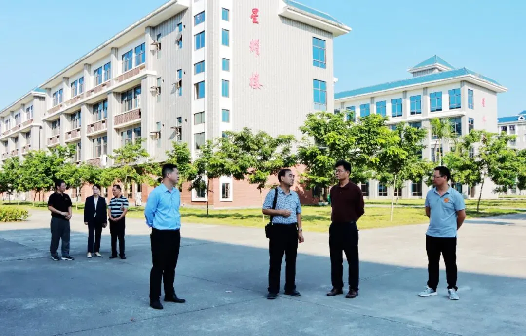 北师大平果实验学校校长高庆海、副校长林玉群、校长助理卓武松带领南宁桂鼎学校领导参观校园,了解学校的整体规划、校园布局。