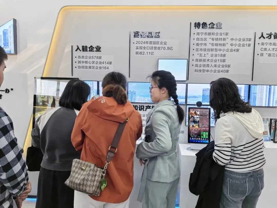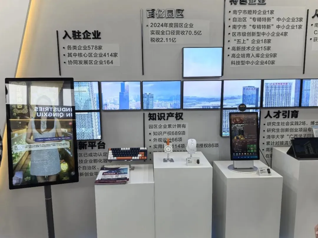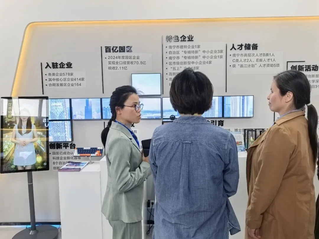 近日南宁青秀区妇女干部考察团一行莅临中广数字科技 (广西) 有限公司,实地参观调研AI智能产品与数字化应用成果。考察团重点了解了AI智能直播(实训、教学)一体机、AI数字人一体机、AI键盘、AI鼠标、AI翻译器等核心产品,现场体验智能技术在工作、生活、创业、服务等场景的实际应用,双方围绕数字技能提升、巾帼创业赋能、智慧服务升级等话题深入交流。