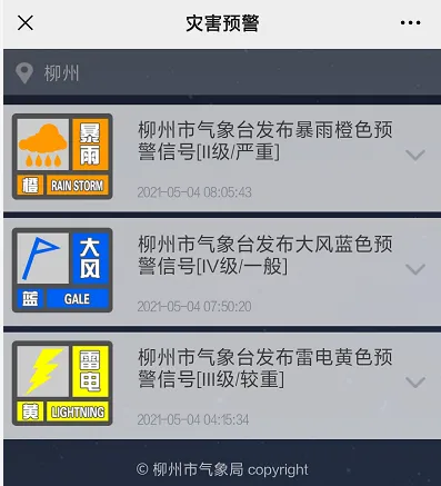 5月4日,柳州连发三条预警:暴雨+雷电+大风来袭!