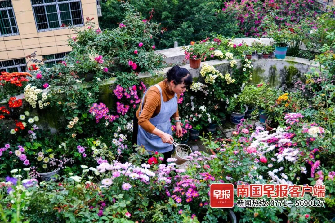 南宁阿姨的“空中花园”火了!100㎡楼顶露台,四季花开!