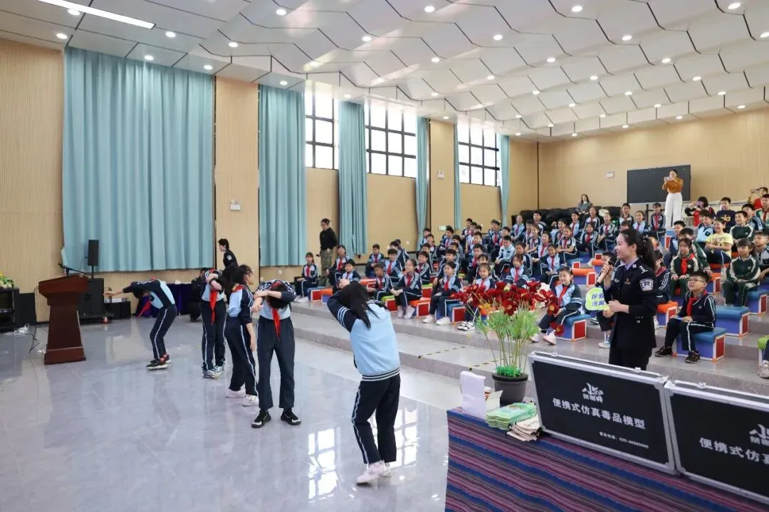 为让禁毒知识入脑入心,活动设置了沉浸式互动体验环节,民警邀请同学们上台参与模拟吸毒体验游戏,让大家直观感受吸毒后的眩晕等不良反应,真切体会毒品危害,进一步强化拒毒意识。