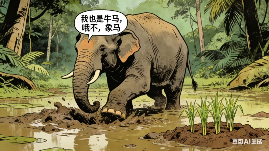 “20世纪50年代以后,海南岛仍有一些地方用牛踩田,把野草踩进泥底,然后插上秧苗,这种方法或许可以看作是古代象耕的延续。”——《南宁通史·古代卷》