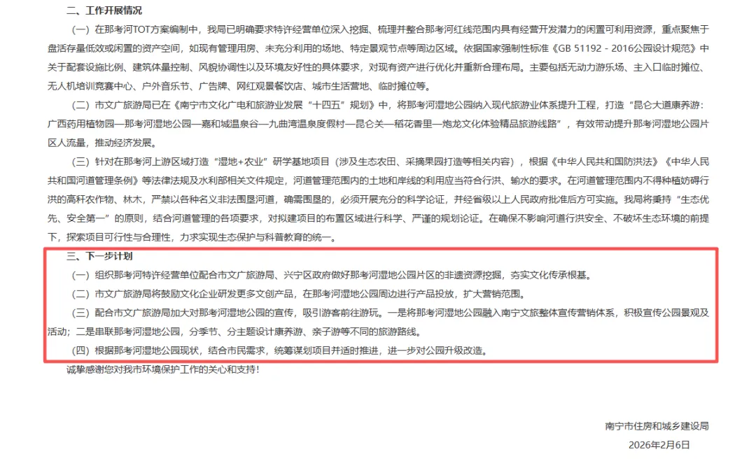 在公开信息中,南宁官方提到,要求特许经营单位对那考河的现有资产进行优化并重新合理布局。对其红线范围内具有经营开发潜力的闲置可利用资源,进行盘活。