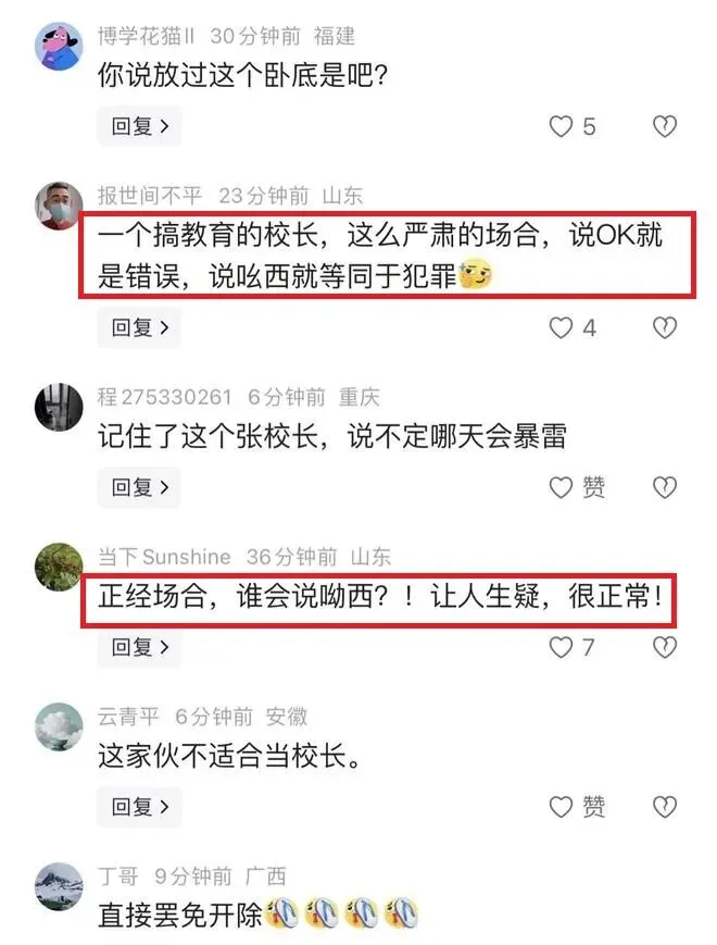 这事儿一出,评论区瞬间成了辩论场。有较真的网友直言不讳:教育阵地岂能儿戏?这种词汇在公共场合出现,不仅是没文化,更是没底线,甚至让人怀疑其立场。 也有理性的声音认为,看当时的语境,校长讲得诚恳,互动也热络,大概率是平时看剧看多了留下的“口头禅”,一时嘴瓢罢了。既然人家都道歉检讨了,也没必要非得把人一棍子打死,上纲上线反而显得不够包容。