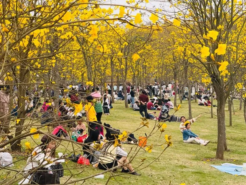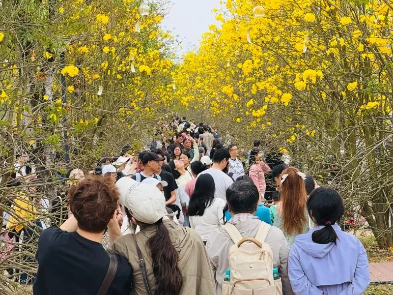 风铃谷近7000株黄花风铃木,不只是让人拍照的,它是“引流入口”。人来了,二次消费就来了,观光车、餐饮、文创、研学……从“门票经济”转向“场景消费”,这才是“赏花经济”的核心算法。