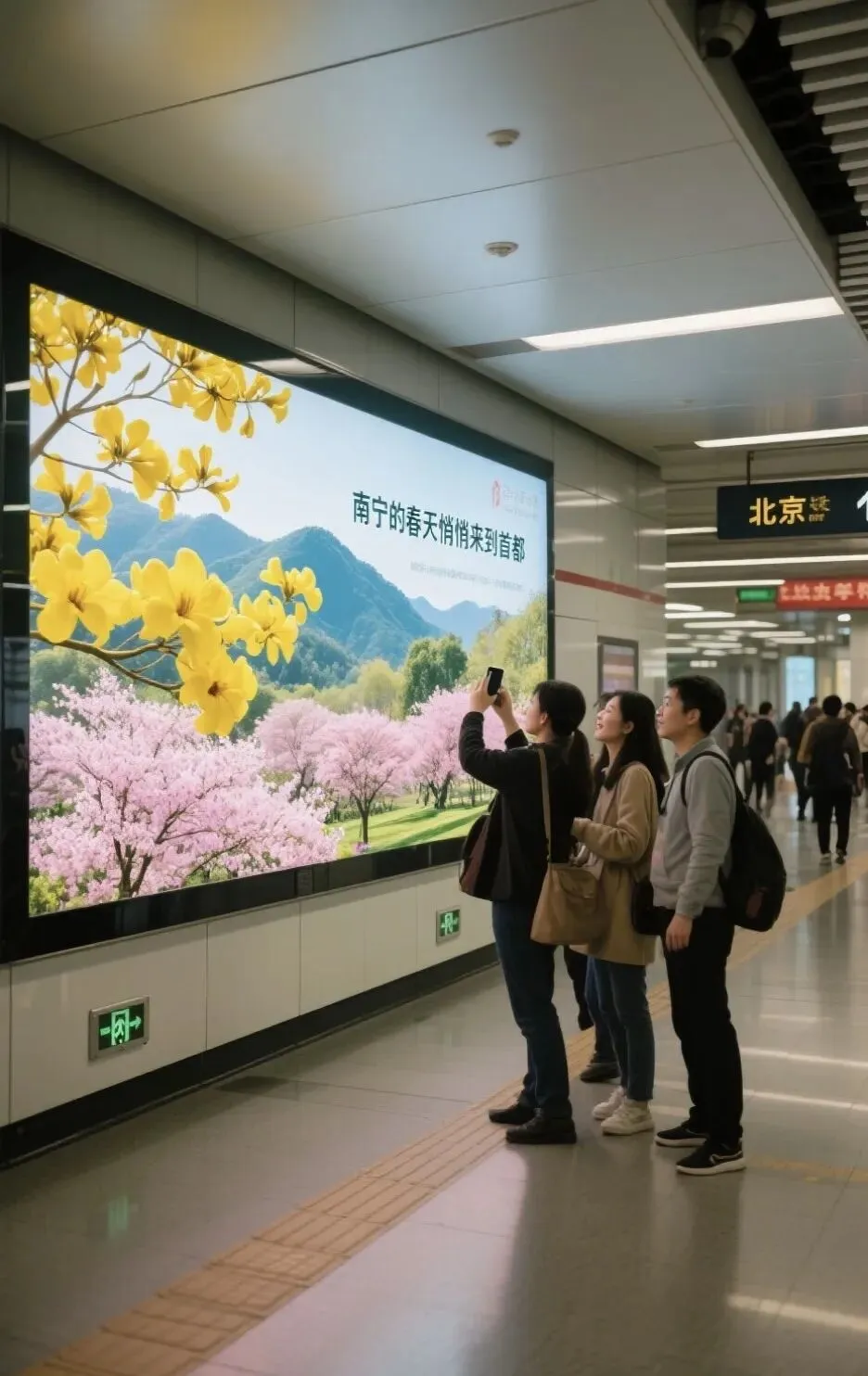 人来人往的北京地铁里,那片南宁的春色,就安安静静待在屏幕上。