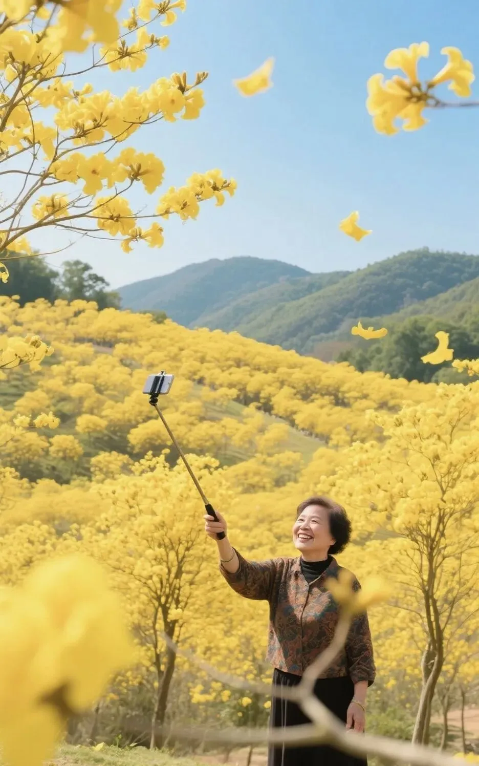 我看见一个阿姨,举着自拍杆,从坡脚拍到坡顶,舍不得走。