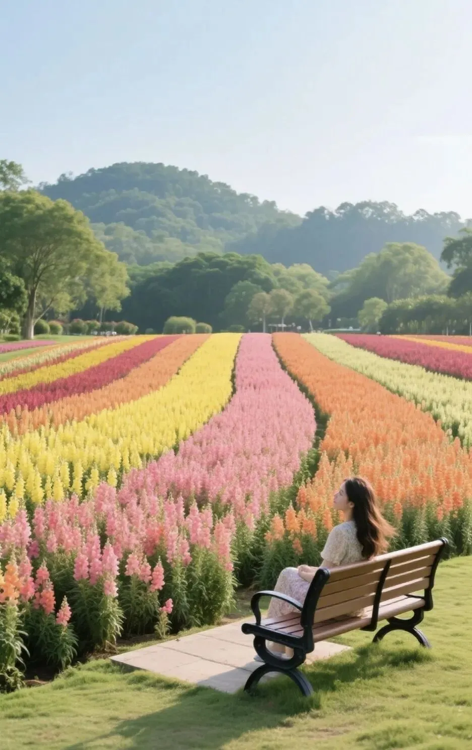 黄的、粉的、橙的,一垄一垄。