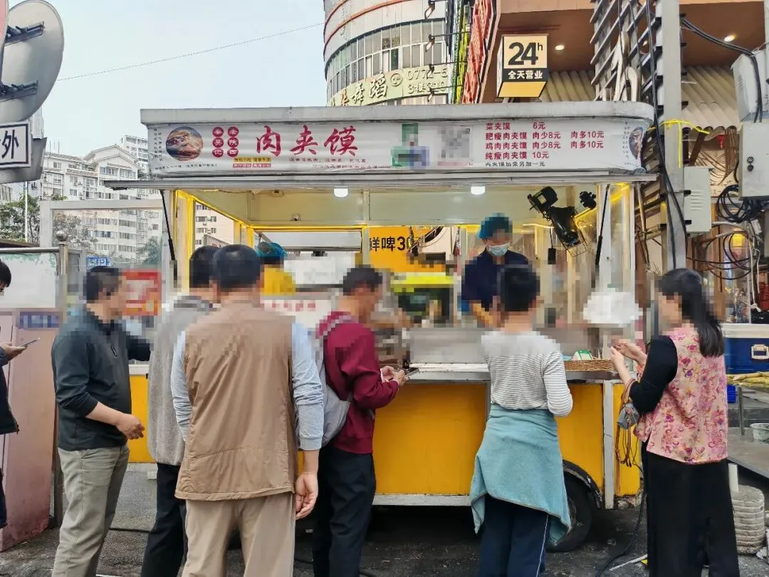 最出名的莫过于吴记肉夹馍了,酥脆可口,一出摊队伍快排到马路边。