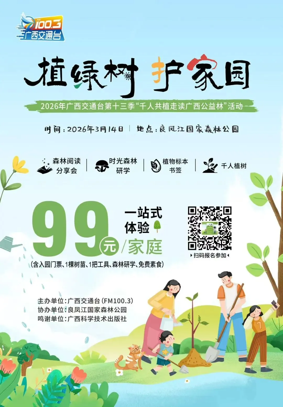 这个春天,让我们跟着广西交通台的主持人,带着孩子走出家门,在良凤江的绿意里,读科普、探森林、种树苗、做手工,不负春光,共播希望,用陪伴与热爱,守护这片壮美广西的绿水青山。
