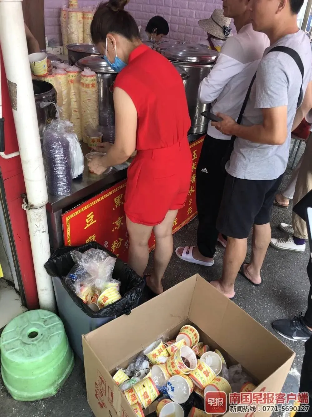 ▲南宁一家糖水铺前,使用过的一次性碗和勺子装了一大箱。南国早报记者 苏华 摄