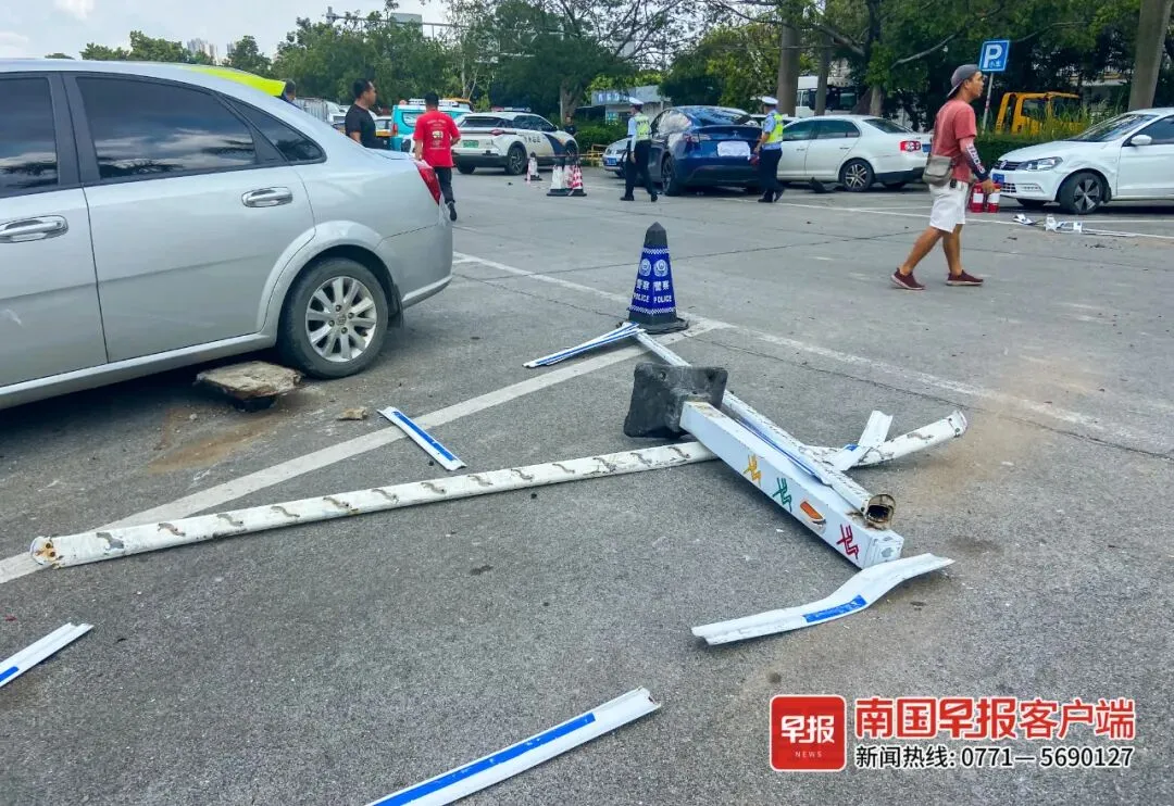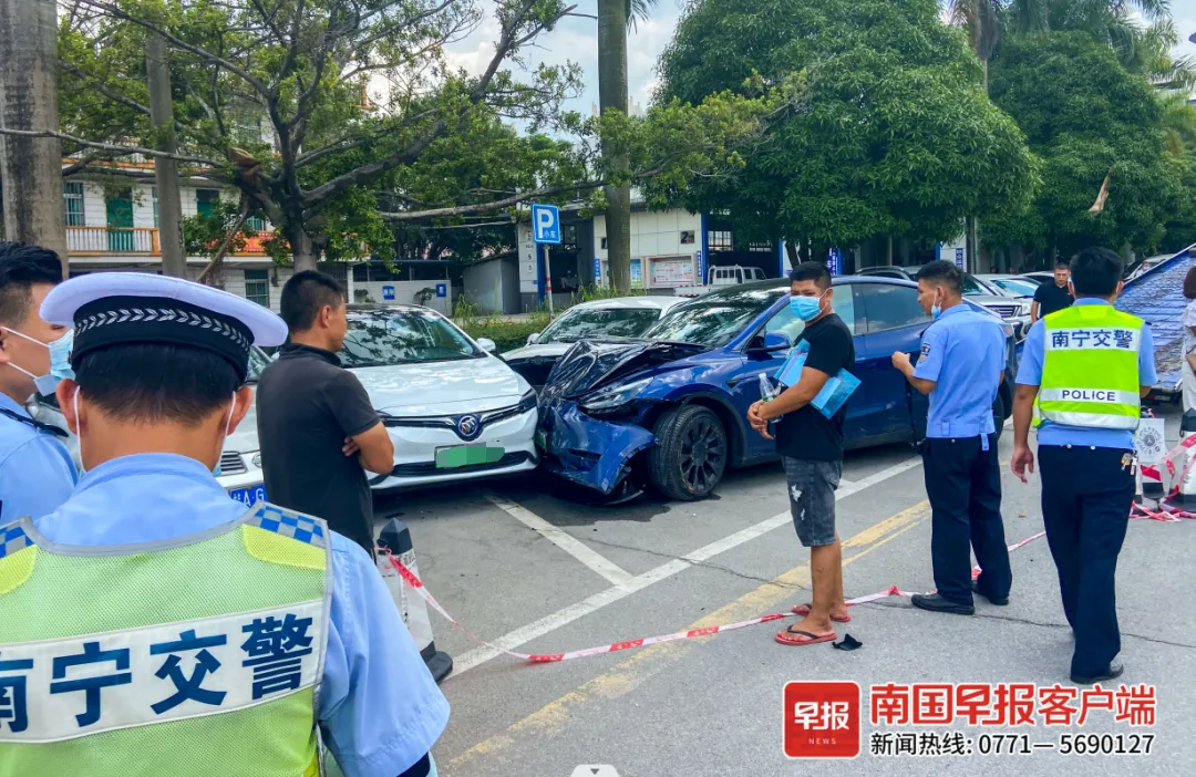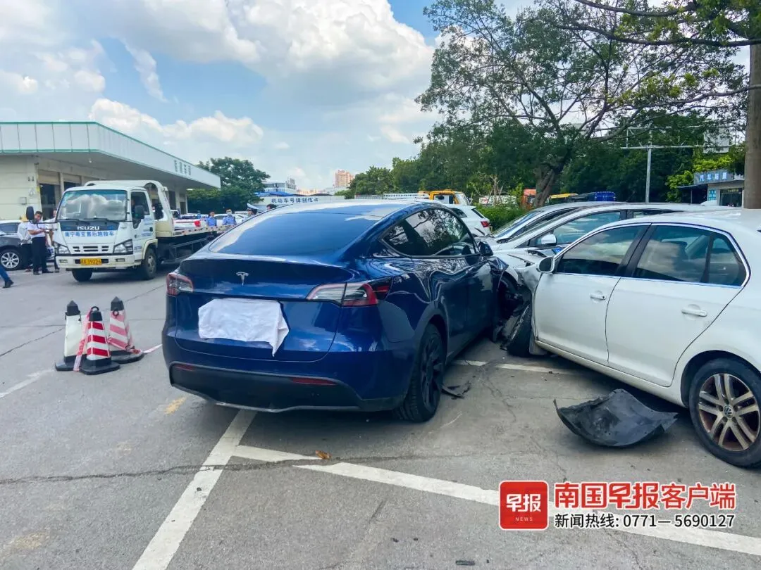 8月17日上午11时许,一辆特斯拉汽车在南宁市机动车狮山检测站内突然失控冲出护栏,连撞8辆汽车后才停下。