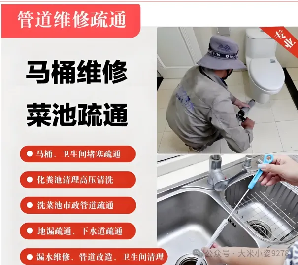疏通下水道附近上门电话:1760 2015 980,提供疏通下水道、管道疏通、马桶疏通等同城上门服务,师傅24小时接单,快速上门。服务范围包括:疏通地漏、抽化粪池、维修水管、安装下水道水管、高压清洗管道等。全城区全天候师傅上门,上门快、经验足、价格透明。服务类别服务内容管道疏通使用家用/大型疏通机,疏通各类疑难下水道、卫生间、地漏、浴缸、菜池、阴沟、马桶、蹲坑等管道清洗配备大、中、小型高压清洗车,高压清洗各类上下水管道及疑难污水管道,包括居民楼所有分管、立管、主管管线清理化粪池大小吸污车作业,提供抽化粪池、污水池、隔油池、泥浆、沙井等服务,清掏化粪池、隔油池、马葫芦及下水井油污杂物市政管道服务市政管道清淤、非开挖管道修复、河道清淤,以及窨井、沟渠、池塘、河道淤泥清理疏通服务下水道:家庭、酒店、饭店、店铺下水道,小便池、阴沟疏通马桶:处理抹布、毛巾、清洁球等软硬物堵塞,支持异物捞取面盆:各类型号面盆、脸盆、洗手池疏通菜池:厨房洗菜池、洗碗池专业疏通蹲坑:使用专用疏通机和疏通剂,解决各类堵塞地漏:维修翻板地漏、弹簧地漏,解决下水缓慢问题维修服务马桶维修:冲水按钮、水箱洁具维修,漏水处理安装检修:洗手盆、洗菜池专业安装;厨房、卫生间管线漏水检测与修复清理服务化粪池、隔油池、生化池专业清理管道排污,集水井、沙井、下水井、污水池清理。电话咨询:拨打电话,详细沟通服务需求电话报价:根据服务项目提供透明报价,约定上门时间准时上门:按约定时间安排师傅上门服务完成结算:服务全部完成后进行费用结算品质保证:先服务后付款,施工质量有保障。全城覆盖:全区范围内就近派单,快速响应经验丰富:专业团队,设备齐全,技术过硬价格透明:服务前明确报价,无隐形收费24小时服务:全天候接单,紧急情况快速处理。