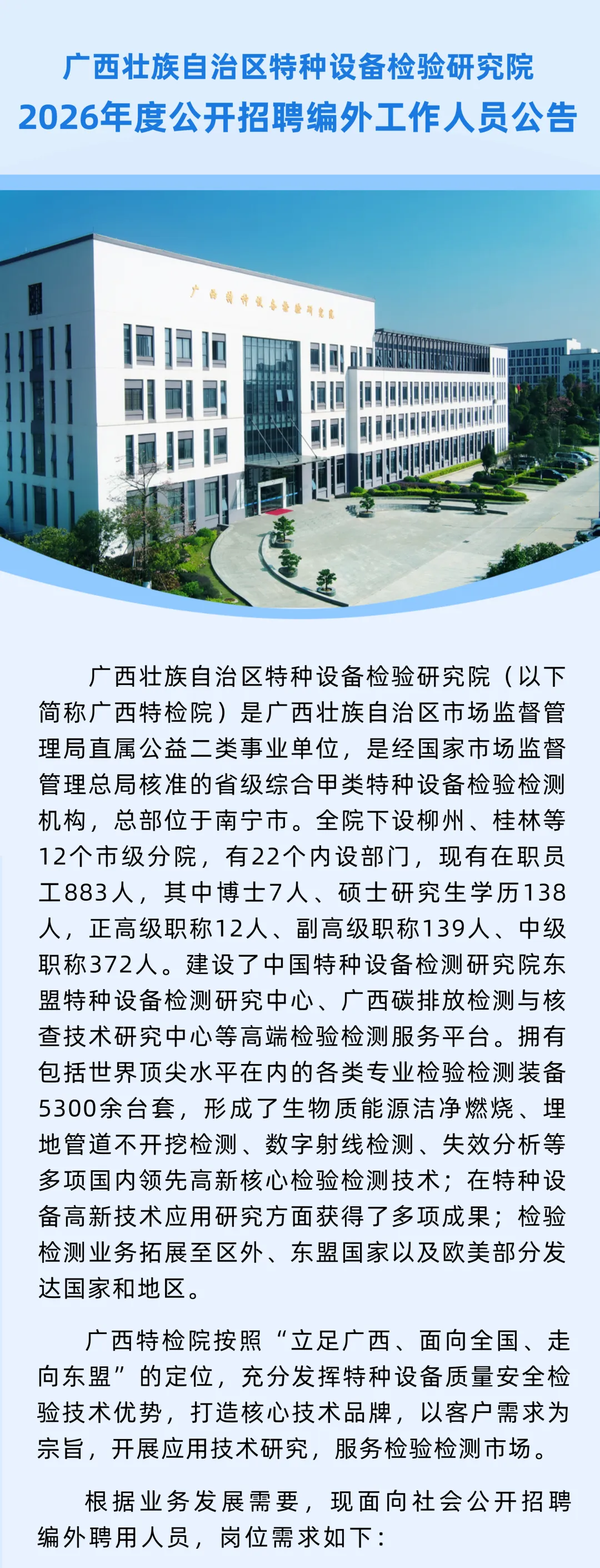 附件1:广西壮族自治区特种设备检验研究院2026年度公开招聘编外聘用人员岗位计划表