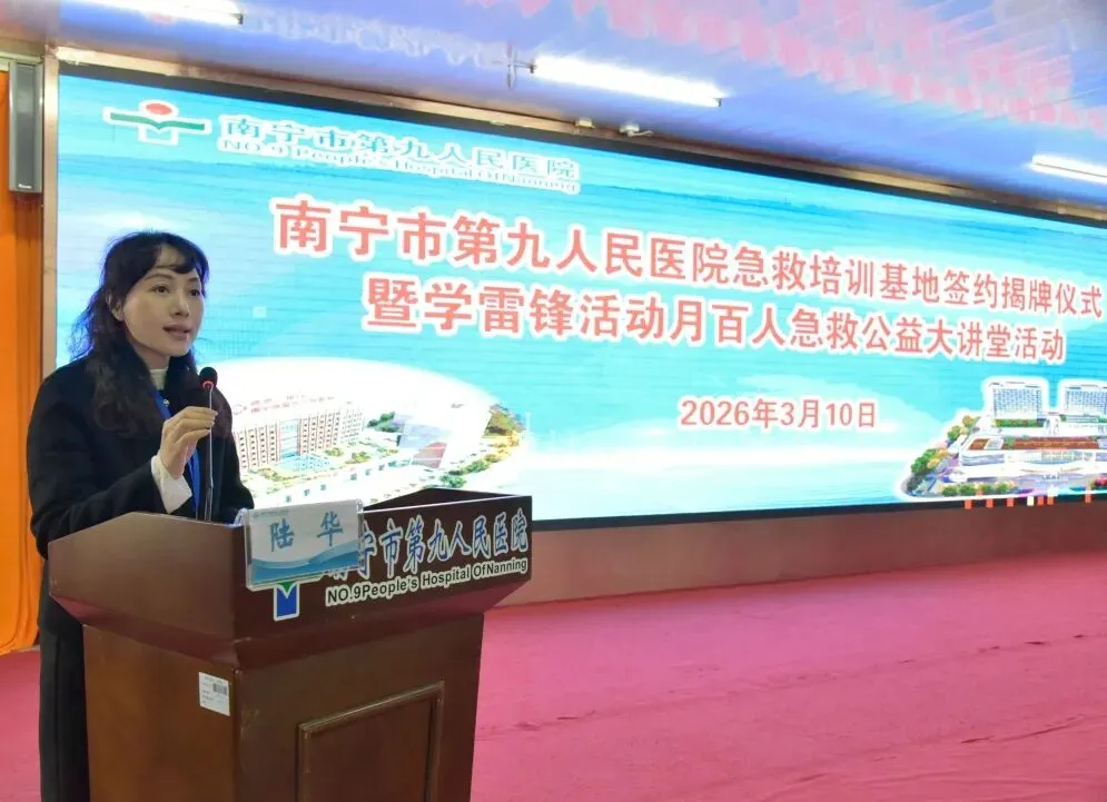 急救培训基地的成功揭牌,为市九医院急救能力建设开启了崭新篇章。下一步,市九医院将以急救培训基地为新起点,充分发挥三级综合医院专业优势,常态化开展急救培训“六进”活动,把雷锋精神与急救公益事业深度融合,让急救知识走进千家万户,为守护南宁东部片区群众生命健康、助力健康南宁建设注入九院力量。