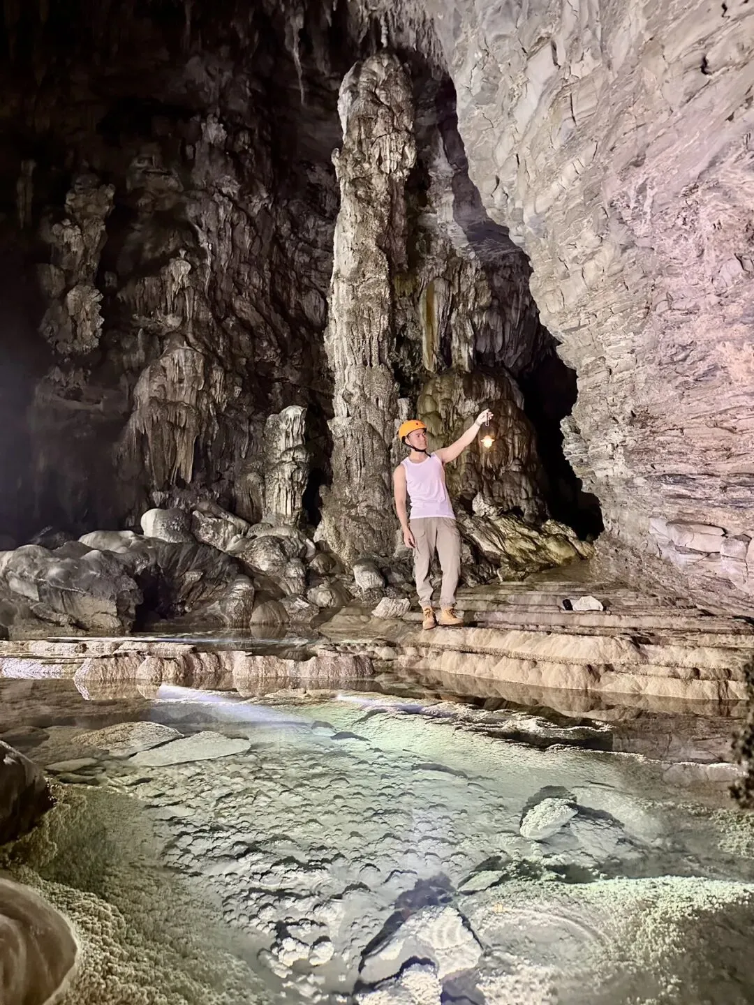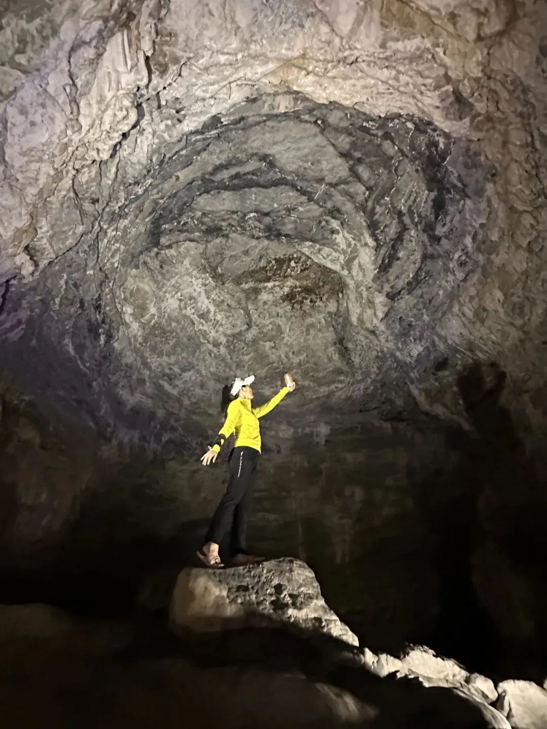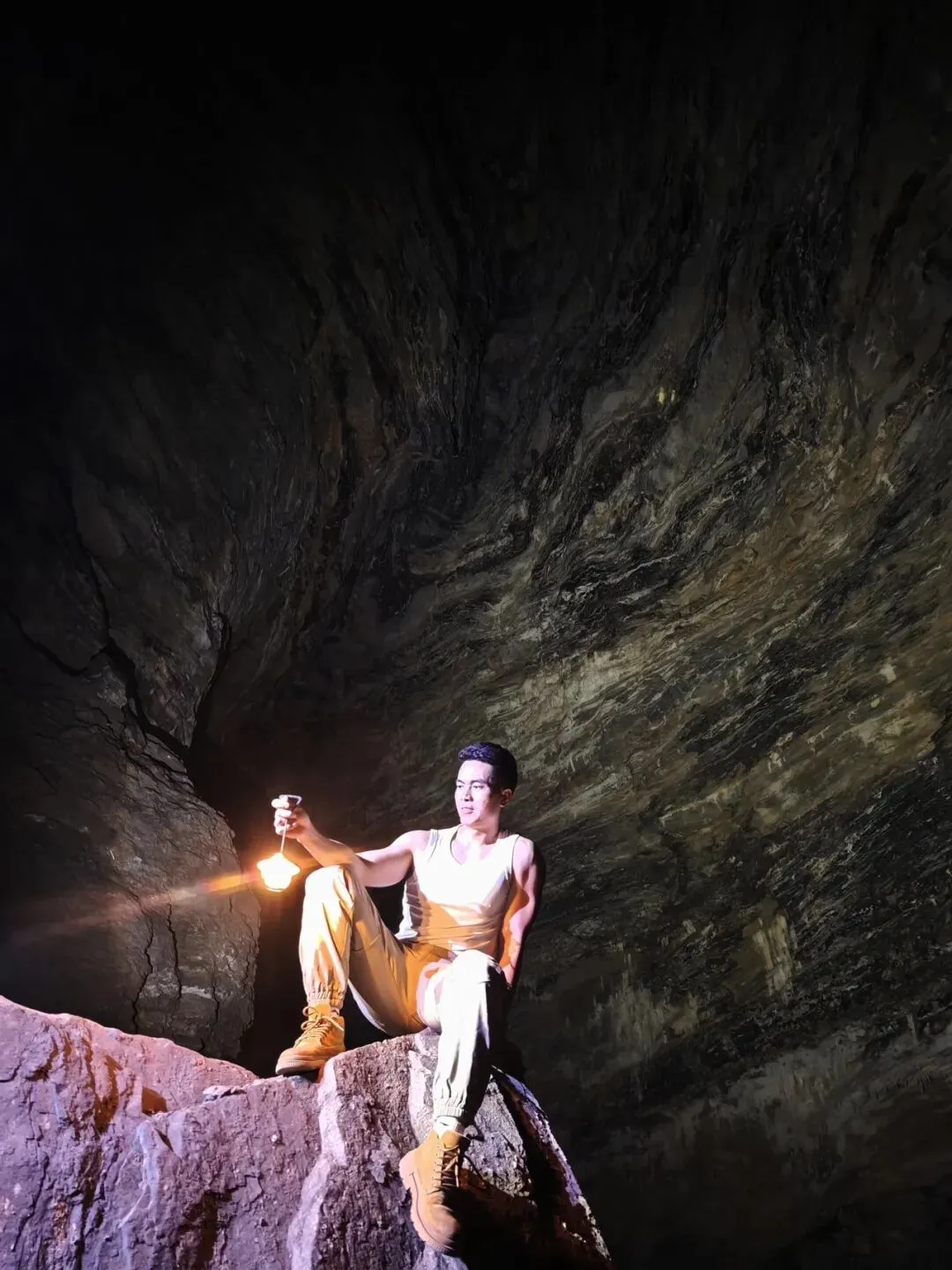 同行一对情侣,没有手电筒,花30元请了向导,享受机位+灯光+动作指导+拍照服务,我们没付费,向导也愿意分享拍摄技巧,叫我们跟着他的线路走,这份纯粹的善意,比溶洞风景更让人动容。