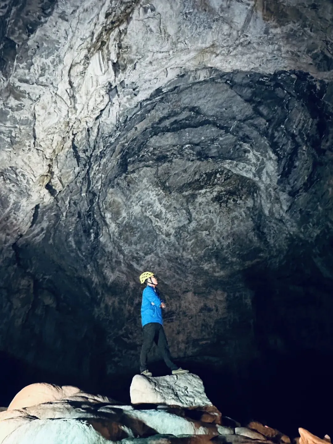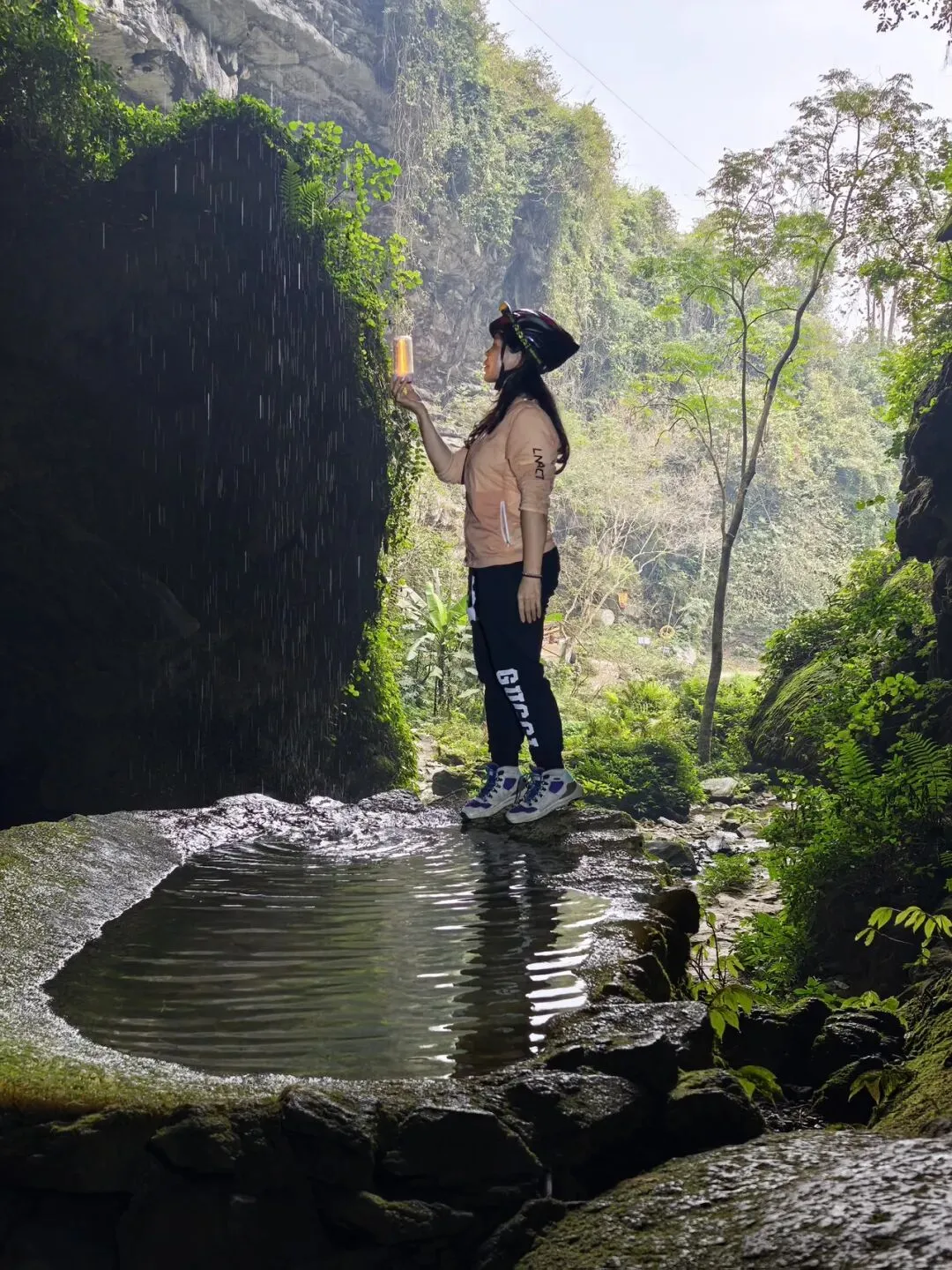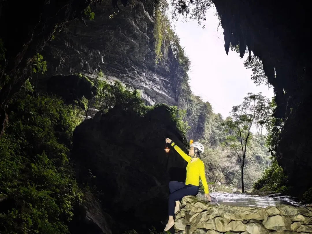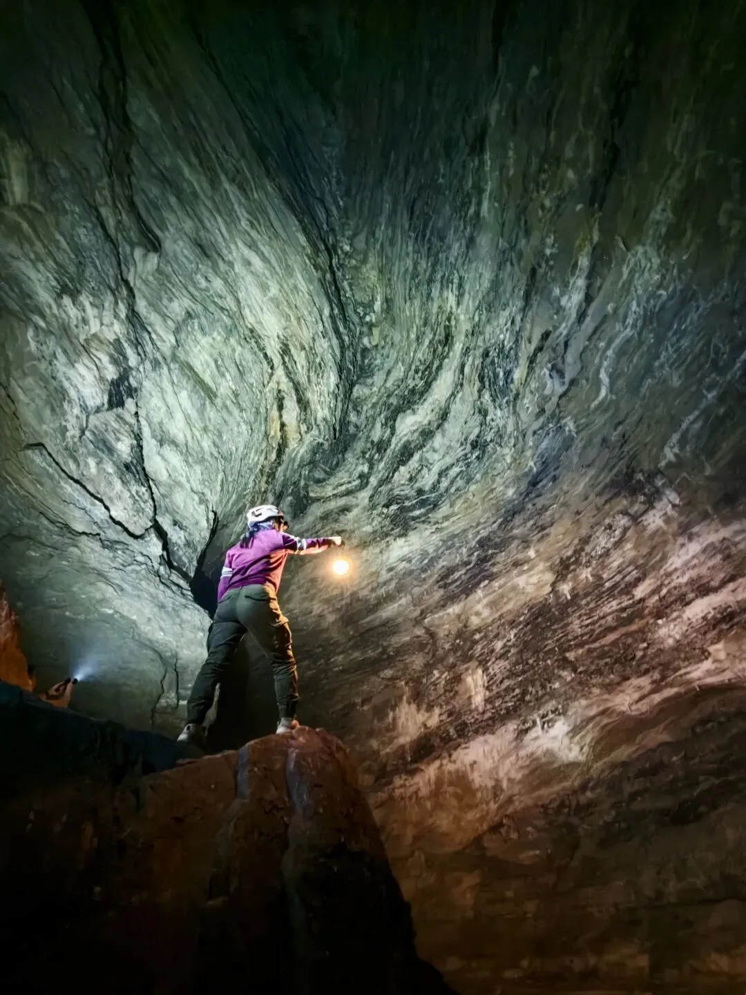 同行一对情侣,没有手电筒,花30元请了向导,享受机位+灯光+动作指导+拍照服务,我们没付费,向导也愿意分享拍摄技巧,叫我们跟着他的线路走,这份纯粹的善意,比溶洞风景更让人动容。