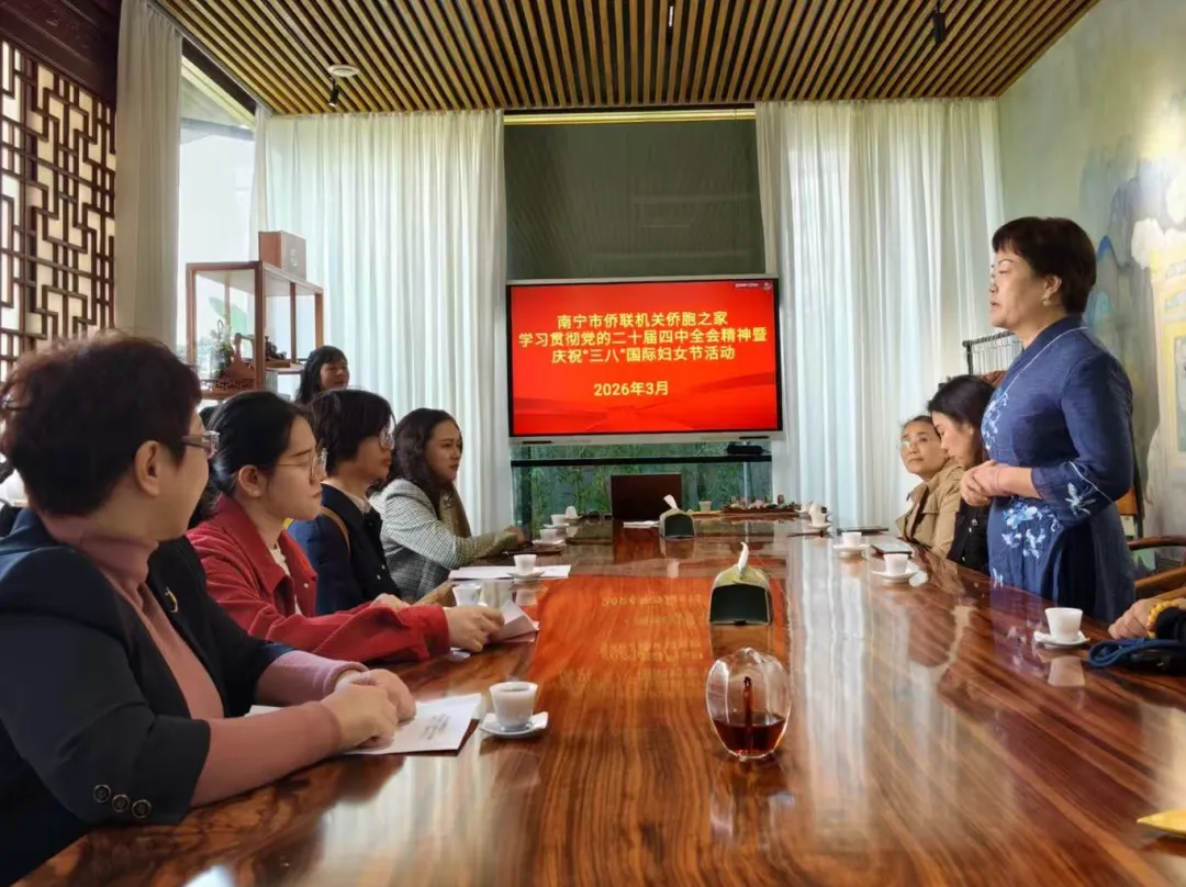 为深入学习贯彻党的二十届四中全会精神,庆祝第116个“三八”国际妇女节,进一步团结引领侨界妇女听党话、跟党走,积极投身中华优秀传统文化传承发展实践,近日,南宁市侨联机关侨胞之家在南宁市茉莉印月艺术馆举办“传承文化根脉 巾帼竞绽芳华”主题活动。各县(市、区)、开发区侨联侨胞之家干部、侨界妇女代表及市侨联机关人员等参加活动。