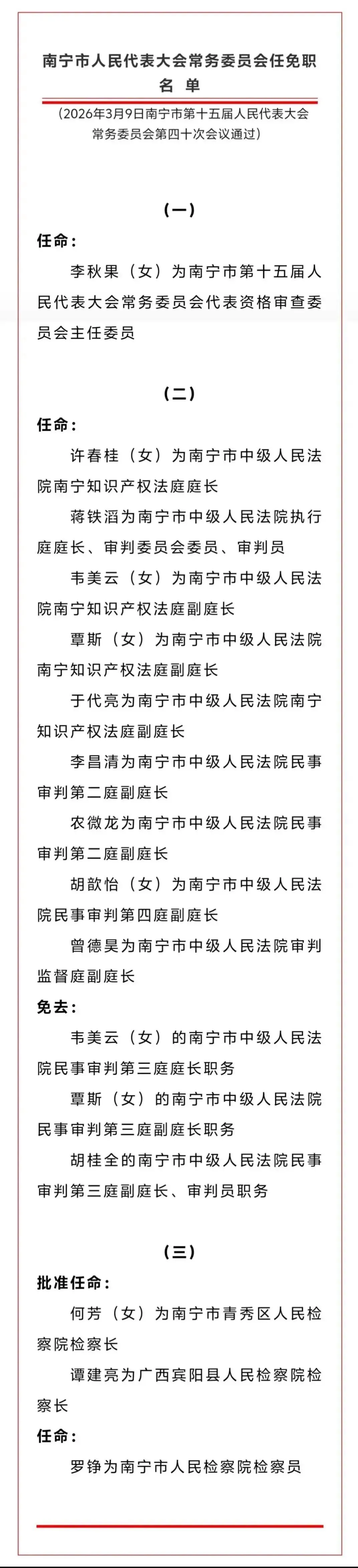 南宁市最新人事任免