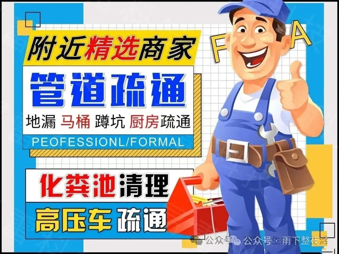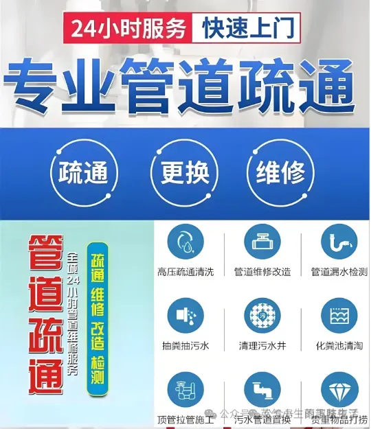 维修服务马桶冲水按钮、水箱维修及漏水处理;更换卫浴、水管维修与漏水检修;高压清洗、化粪池清理、管道排污。