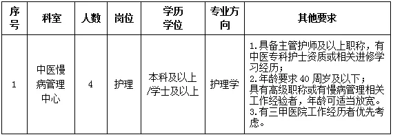 根据医院的发展需求,现公开招聘4名护理人员,具体要求如下: